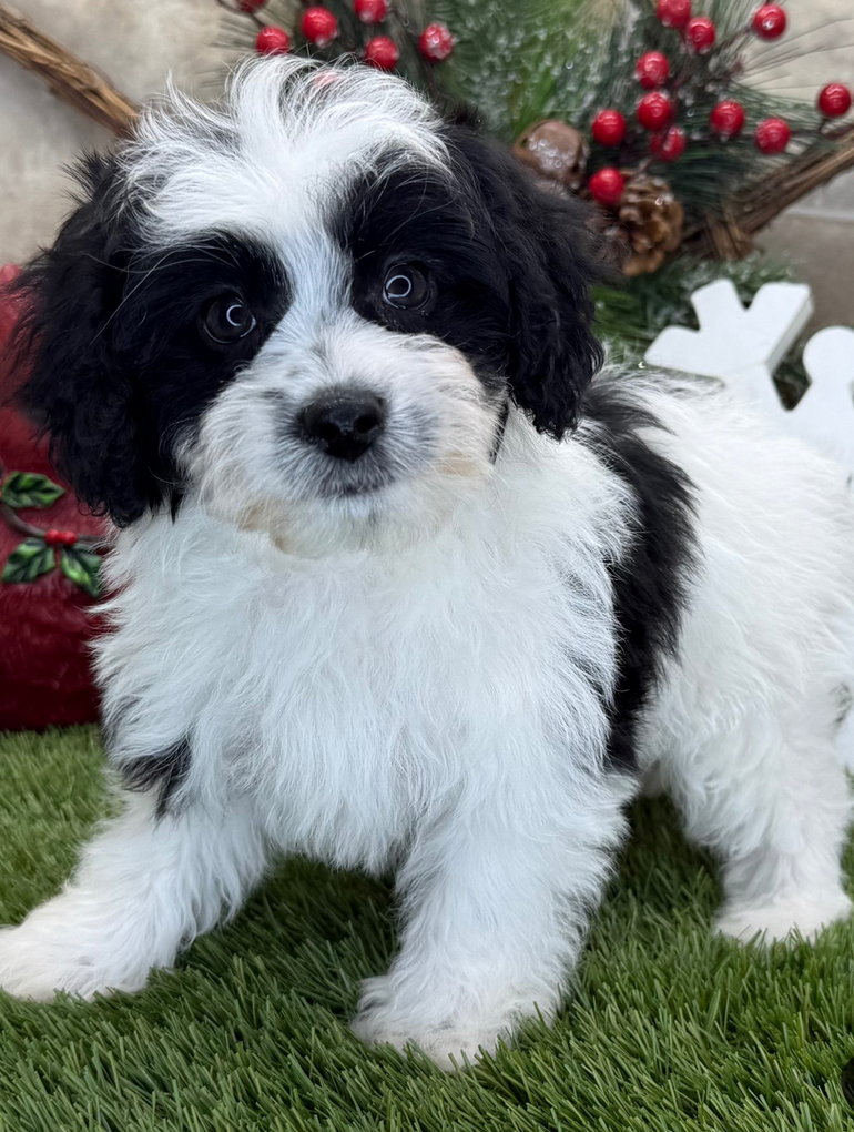 Hi, I’m Layla! I’m a 10-week-old female Havapoo. My dad is a Poodle and my mom is a Havanese. I have a beautiful black & white coat, and I was born on September 16, which makes me a Virgo pup. I am ready now to plan my trip to my forever family. Once I reach my adult size, I’m expected to weigh between 8–16 lbs. One puppy kiss, and you’ll never want to let me go, I just know it.